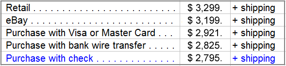 IMPORTANT: ALL PRICES and SPECIFICATIONS ARE OFFERED AS A SHOPPING GUIDE AND ARE SUBJECT TO CHANGE WITHOUT NOTICE. WE STRIVE TO KEEP ALL WEB PAGES UP-DATED, HOWEVER, SOME ARE MISSED FROM TIME TO TIME.