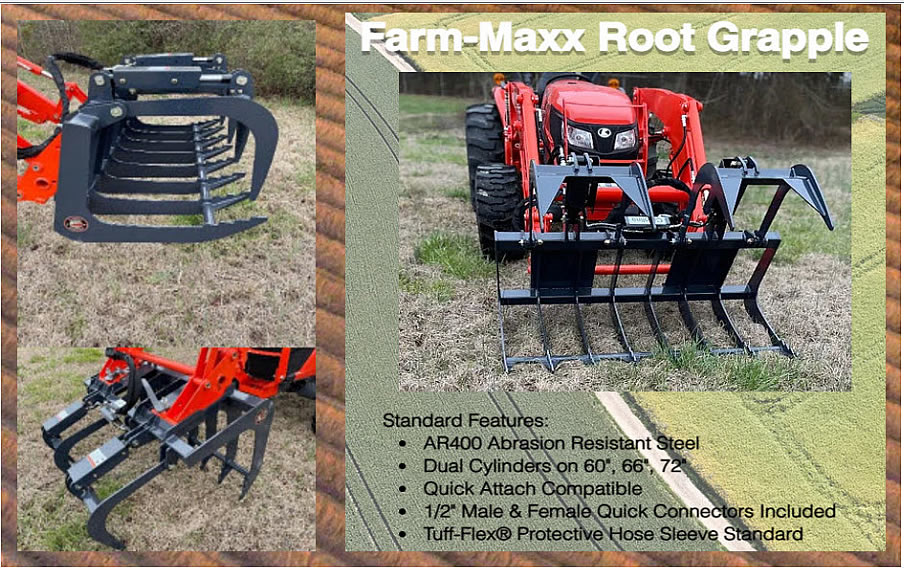 Farm-Maxx Rook Grapple, Grapple Rake Attachment, Root Rake, Loader Root Rake Attachment, Skid Steer Root Rake, Tractor Root Rake.
